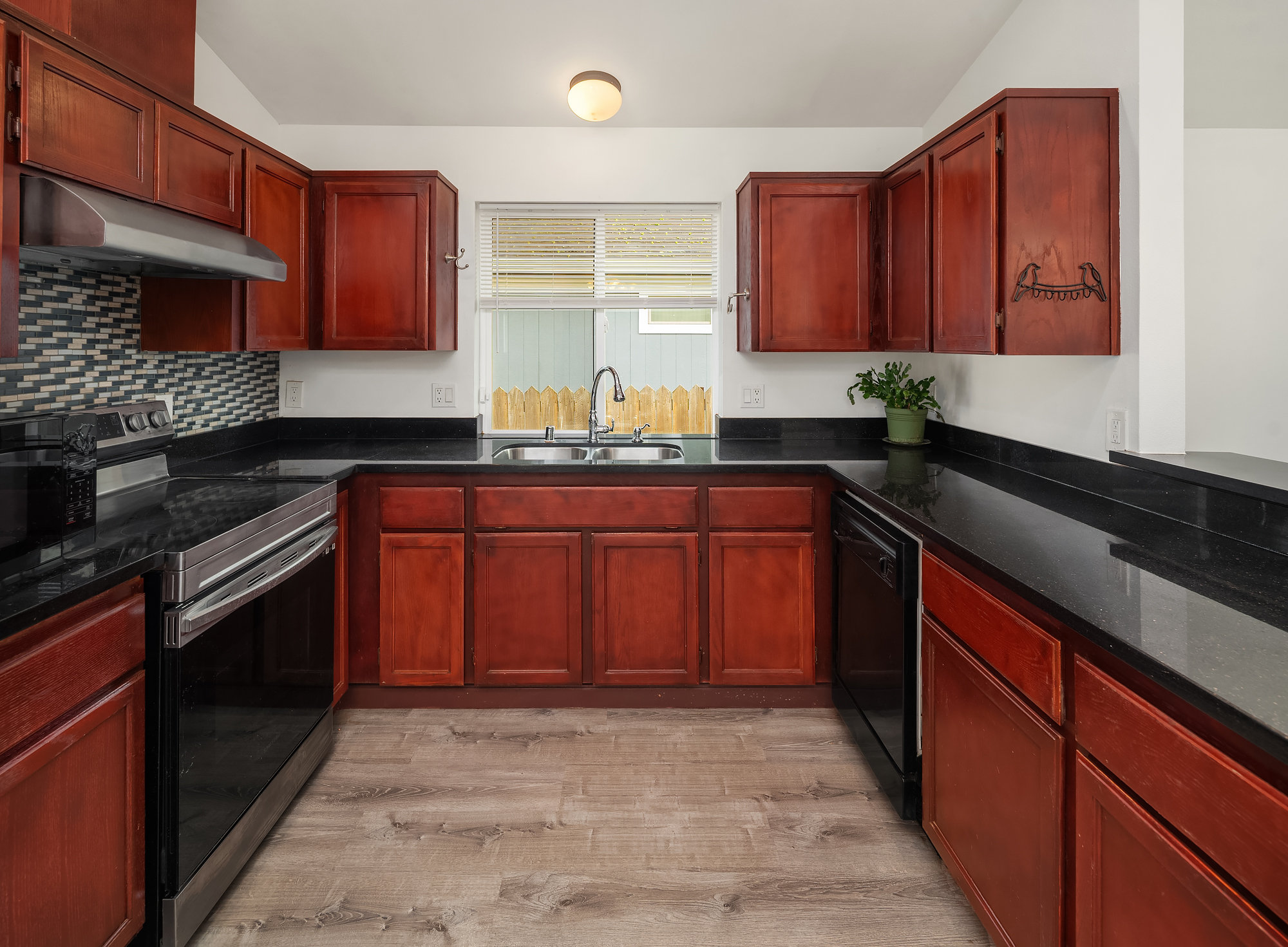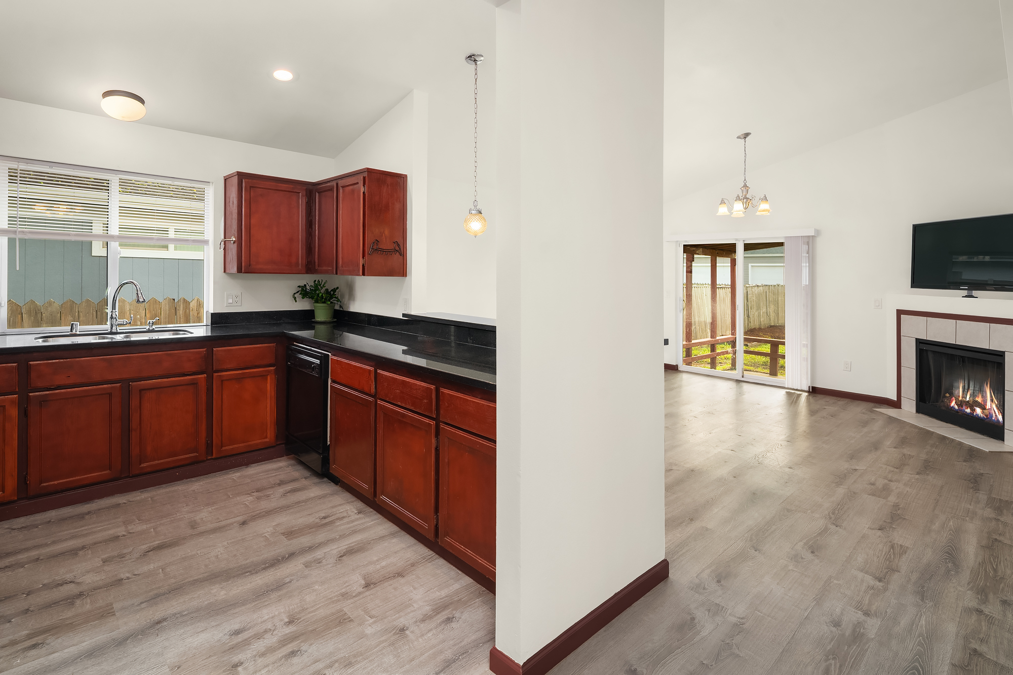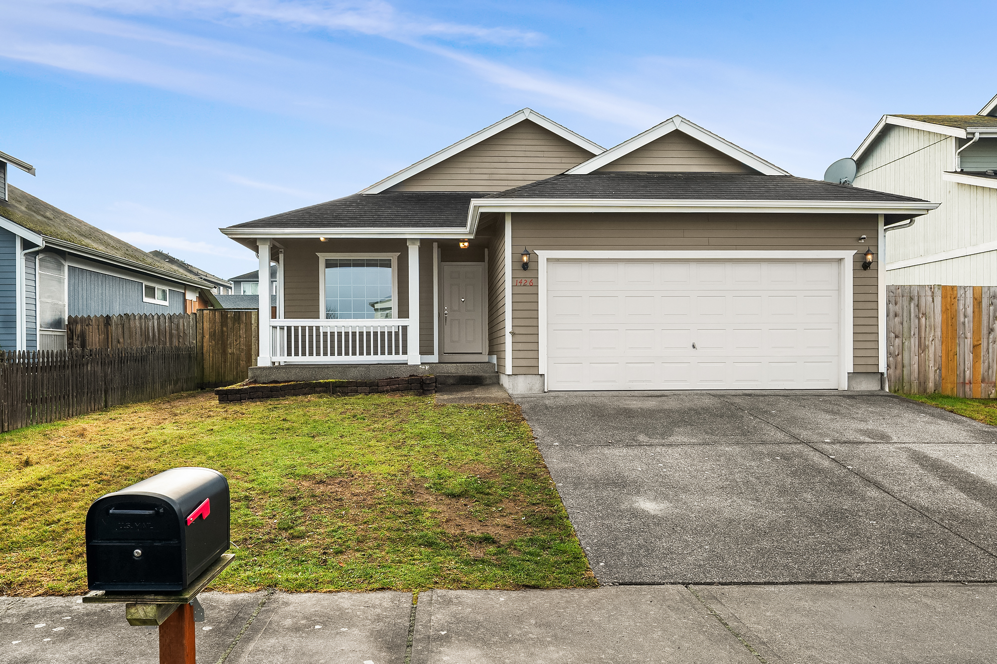 Step into this spacious rambler offering 1,452 sq ft of comfortable living. The home features 3 good-sized bedrooms, 2 full bathrooms, and an attached 2-car garage. Enjoy the open feel of vaulted ceilings, a cozy fireplace, and a kitchen with granite countertops. Both front and back porches add charm and functionality. Situated on a 6,750 sq ft lot with a back alley access, the large backyard offers plenty of space to relax or entertain. Conveniently located near markets, parks, freeway access, schools, hospitals, and bus lines. No HOA.