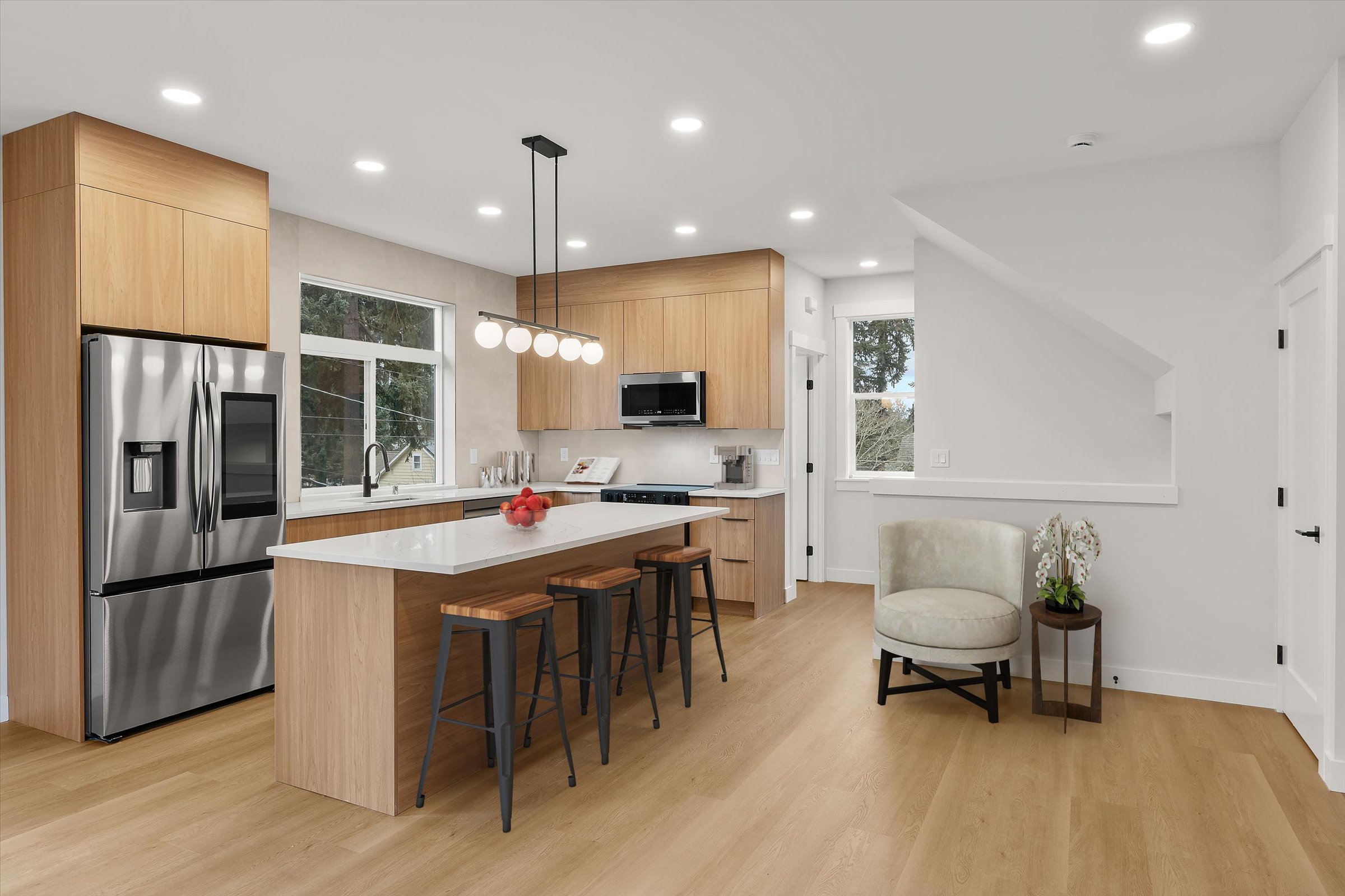 Experience the perfect blend of sophisticated design and everyday comfort in this spectacular new construction home. The spacious, light-filled open-concept living area features a luxurious fireplace and is designed for seamless entertaining and relaxation. Culinary enthusiasts will fall in love with the chef’s kitchen, which boasts high-end stainless steel appliances, elegant quartz countertops, and abundant storage provided by custom cabinetry. Retreat to the upper level to find a decadent primary suite designed as a true sanctuary. Highlights include the spa-inspired en suite bathroom and an enormous walk in closet. The second upstairs bedroom also includes its own ensuite bathroom and features abundant natural light. Complementing the EV-ready garage is an unbeatable central location with easy access to I-5 and north Seattle's many vibrant restaurants, shops, and parks.
