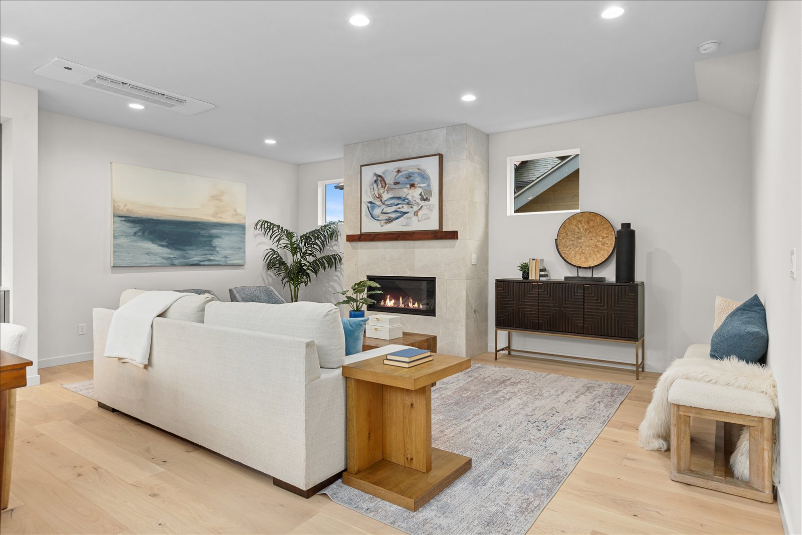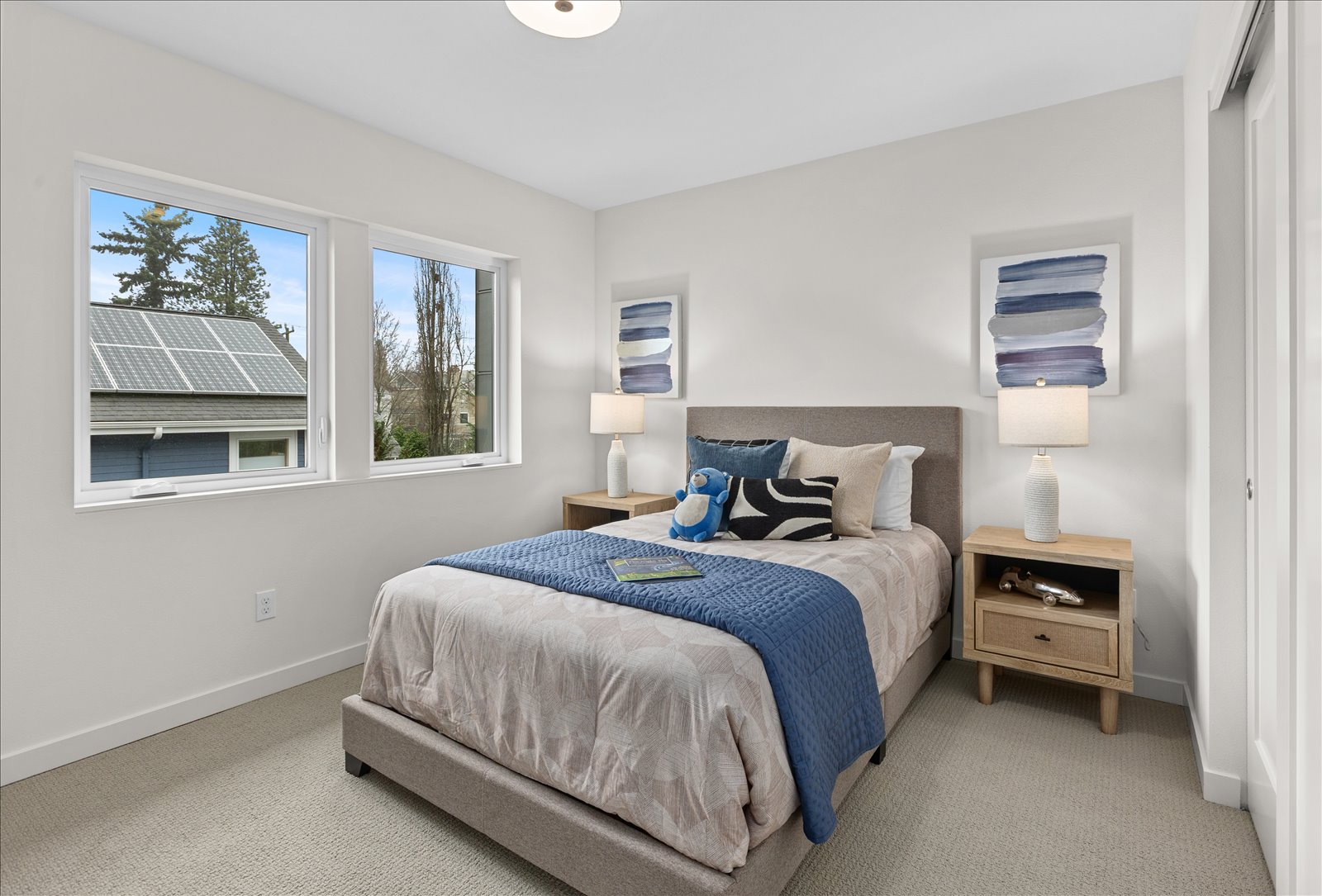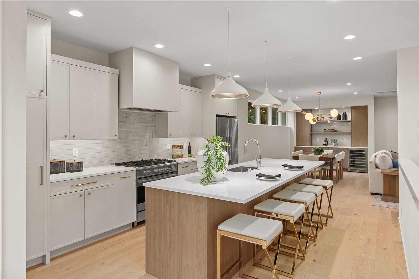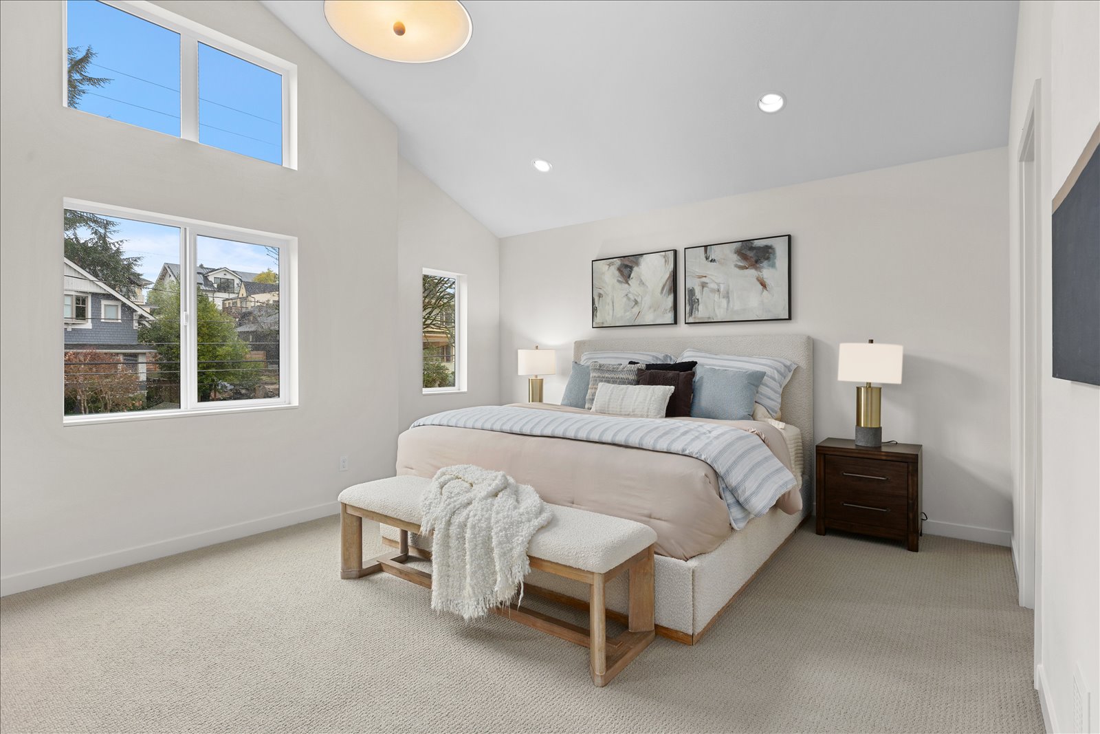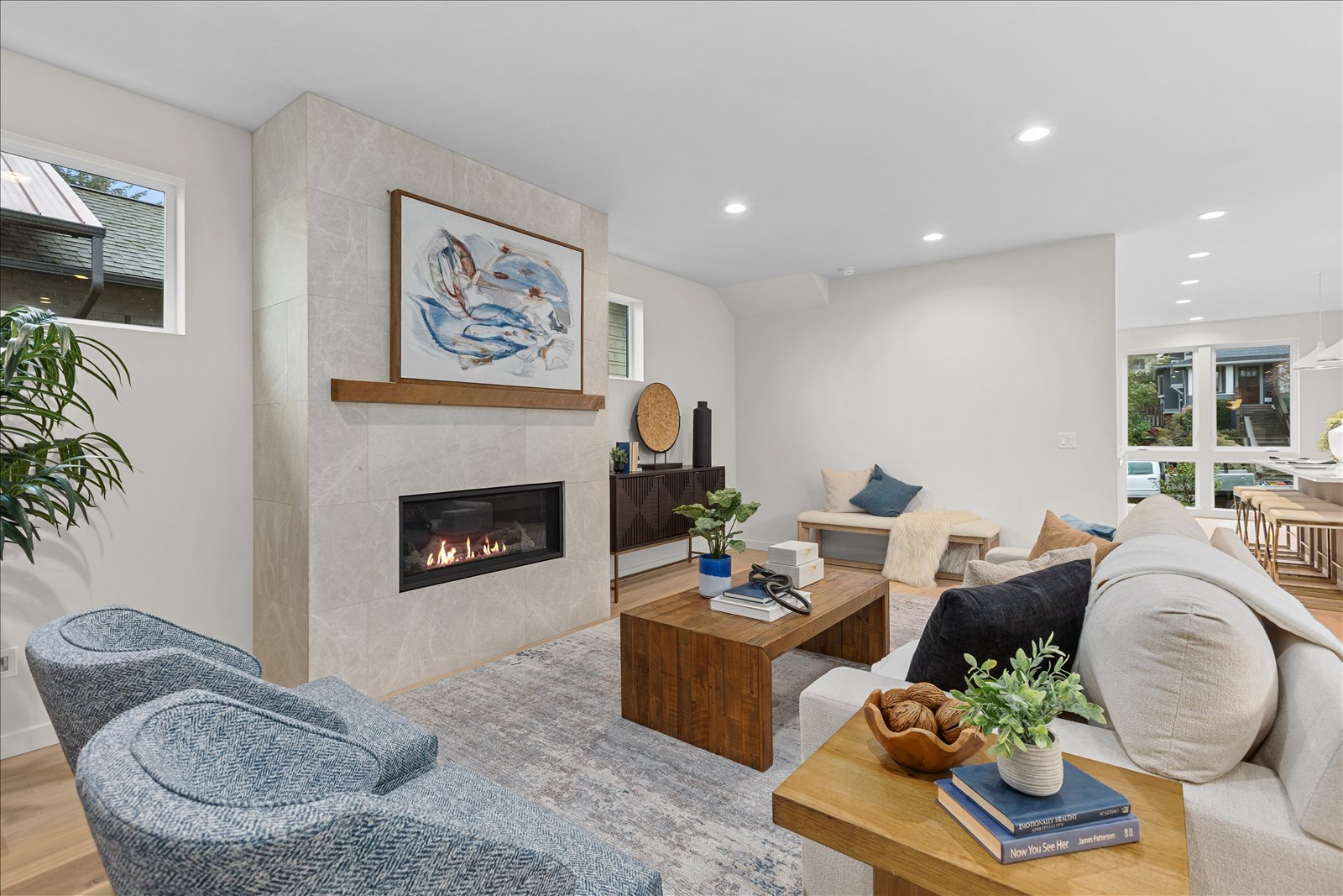 Welcome to a thoughtfully crafted new construction residence tucked into the heart of Wallingford, where striking modern design meets warm, functional living spaces. Oversized windows flood the home with natural light, creating an inviting atmosphere throughout the open main floor anchored by a stylish tile wrapped fireplace and a chef inspired kitchen. A dedicated entertaining bar with wine fridge makes gathering with friends and family a breeze. Upstairs, the vaulted primary suite offers a peaceful retreat with a spa like bath. Enjoy sweeping rooftop views, a rare two-car garage, full laundry room, and private yard. All just minutes from dining, parks, and shops - an exceptional home in one of Seattleās most coveted neighborhoods.