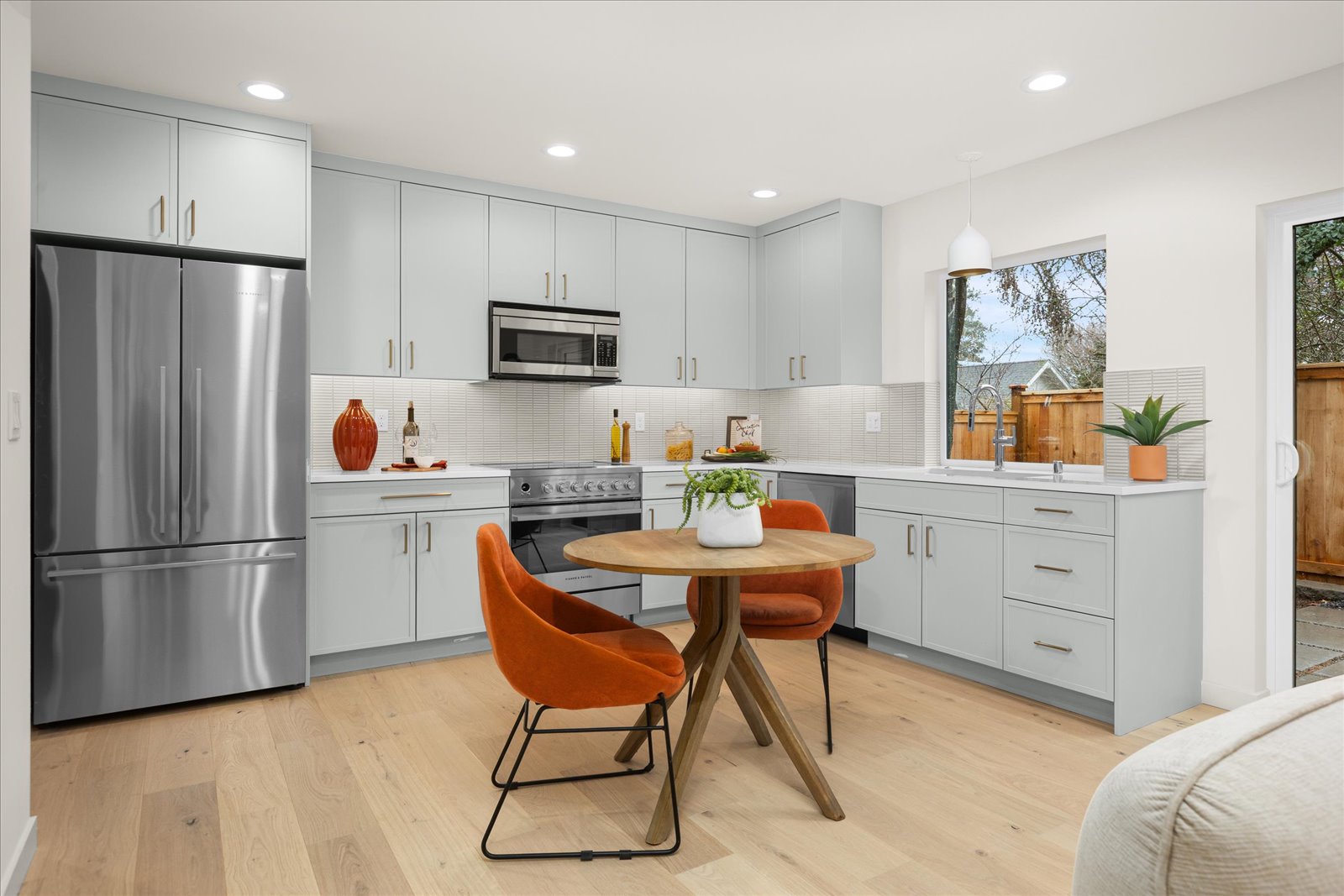 Experience refined modern living in the heart of Wallingford. This beautifully designed detached new construction home offers rare privacy with a fully fenced yard and patio, perfect for outdoor dining, pets, or quiet morning coffee. Inside, natural light pours through large windows, illuminating an open-concept layout with warm designer finishes and effortless flow. A stylish kitchen anchors the main floor, while upstairs you’ll find three spacious bedrooms, a luxe primary bedroom with ensuite, and generous storage throughout. Paired with a private garage and set steps from the charm of Wallingford, this residence delivers a rare blend of modern design, privacy, and an address that elevates your everyday rhythm.