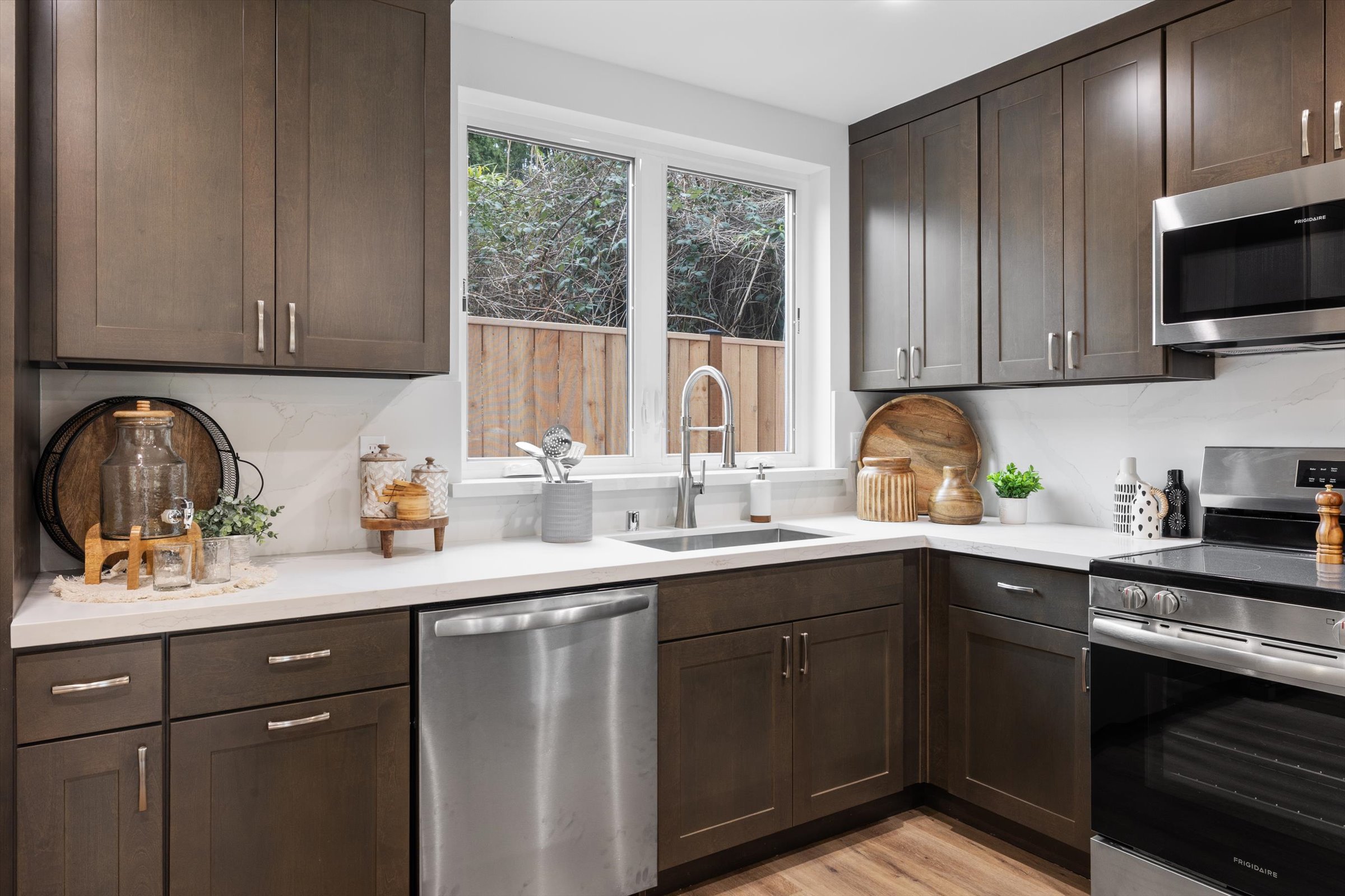 Don’t miss your chance on the lowest-priced standalone home in all of West Seattle! This charming residence blends modern comfort with thoughtful design, featuring stainless steel appliances, quartz countertops, and beautifully crafted wood paneling. Vaulted ceilings and large windows create a bright, open feel, while energy-efficient heating and cooling keep you comfortable year-round. Take advantage of your own private fully fenced yard, ideal for relaxing or hosting guests. Plus enjoy the convenience of a dedicated off-street parking space. Tucked between Longfellow Creek and green space, this home offers a quiet retreat just 10 minutes from downtown Seattle. A rare find at this price, it’s the perfect opportunity into homeownership.